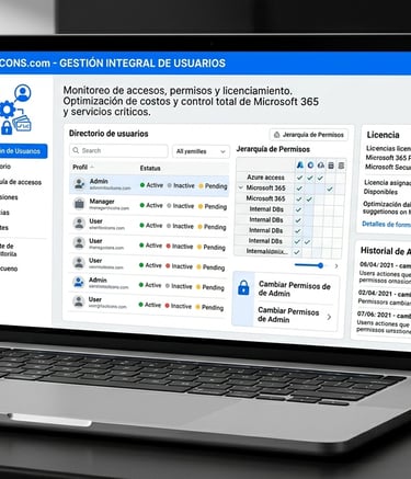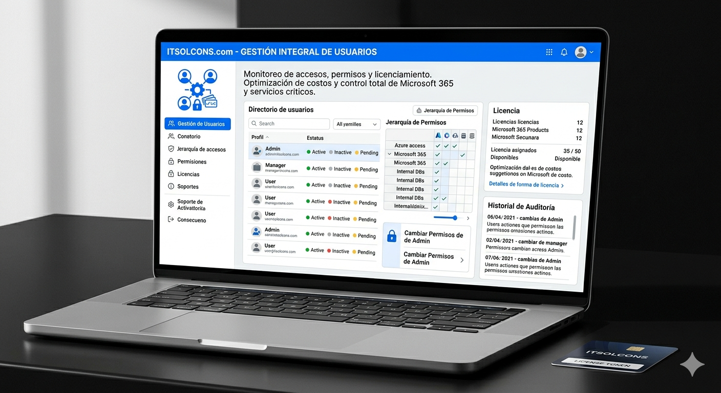 Administración eficiente de accesos, permisos y licenciamiento.